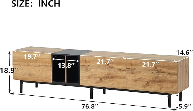 80" Modern Long TV Stand with 3 Doors and Storage Cabinets for Televisions up to 80 Inch, Entertainment Center Console Table, Media Furniture for Living Room, Office, Natural Wood