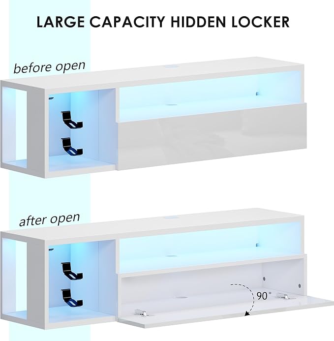 DlandHome Floating TV Stand with LED Light, 39.3’’ Wall-Mounted Media Console, Floating Shelf for Under TV Wall Mount with Storage Shelf for Bedroom Living Room, White