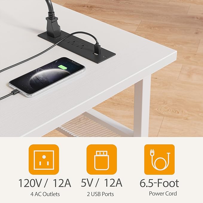 About This Computer desk with power outlets:This computer desk is equipped with 4 Standard Plug Outlets & 2 USB Ports,...