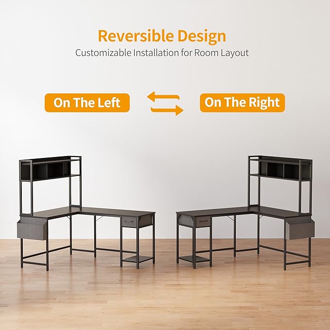About This Modern Design Style: L Shaped desk provides you a fashionable, well-design desk Abundant storage space: The L-shaped desktop...
