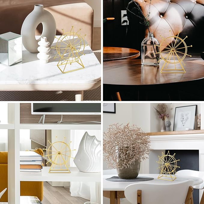 Gold Ferris Wheel Decorations for Office Bookshelf Decor, Home Decor Living Room Shelf- Spinning Ferris Wheel for Gift Birthday Thanksgiving Valentine's Day