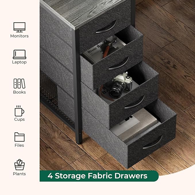 About This 【Computer Desk with Drawers】- PATENT PENDING! Using an RF remote control to turn off the lights, the desk...