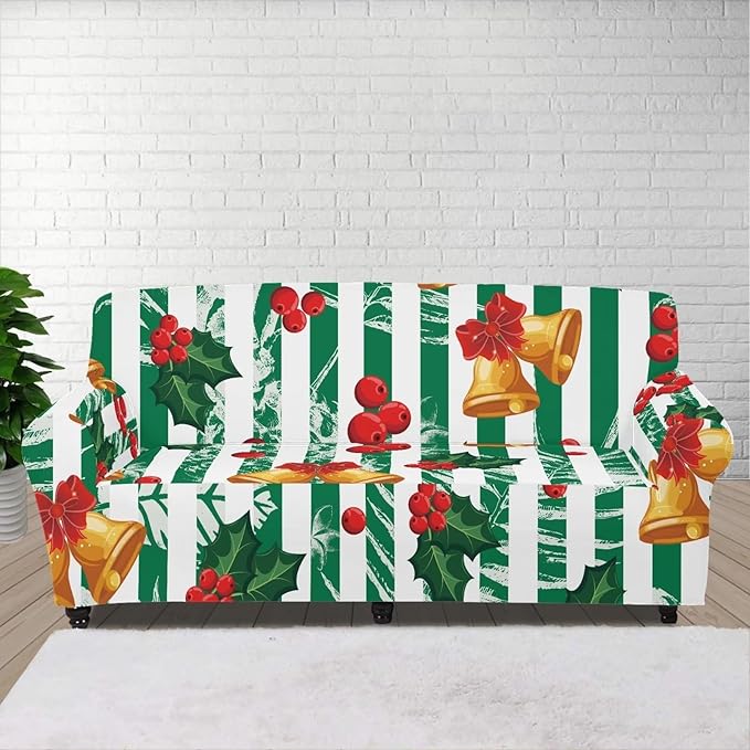FKELYI Jingle Bell Print Christmas Sofa Cover Stretch Couch Covers Wear-Resistant Sofa Slipcovers Replacement Washable Furniture Protector with Elastic Bottom-XL