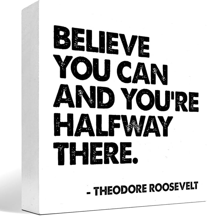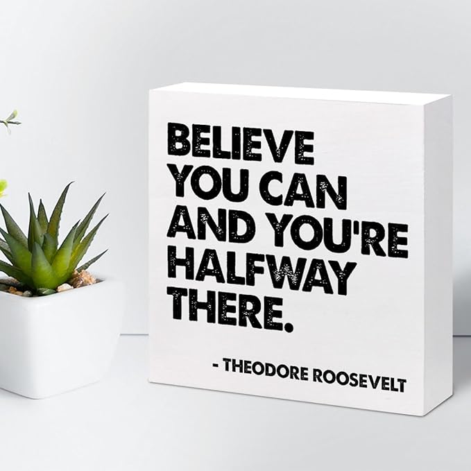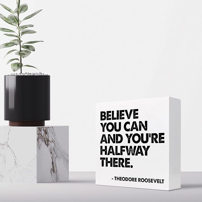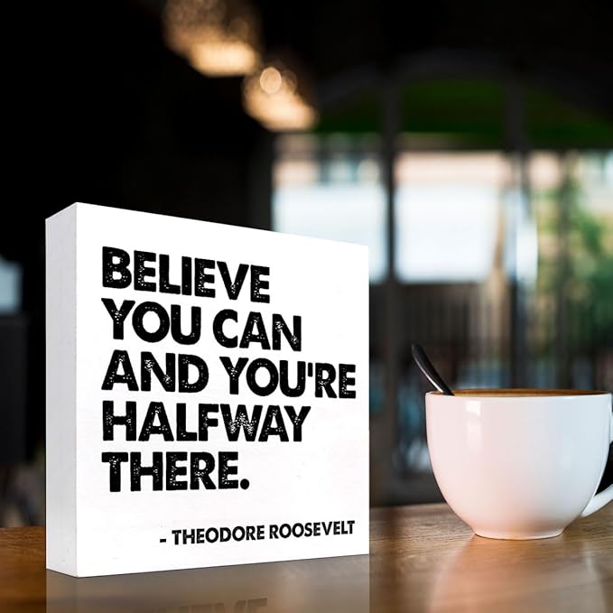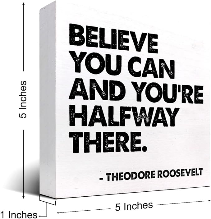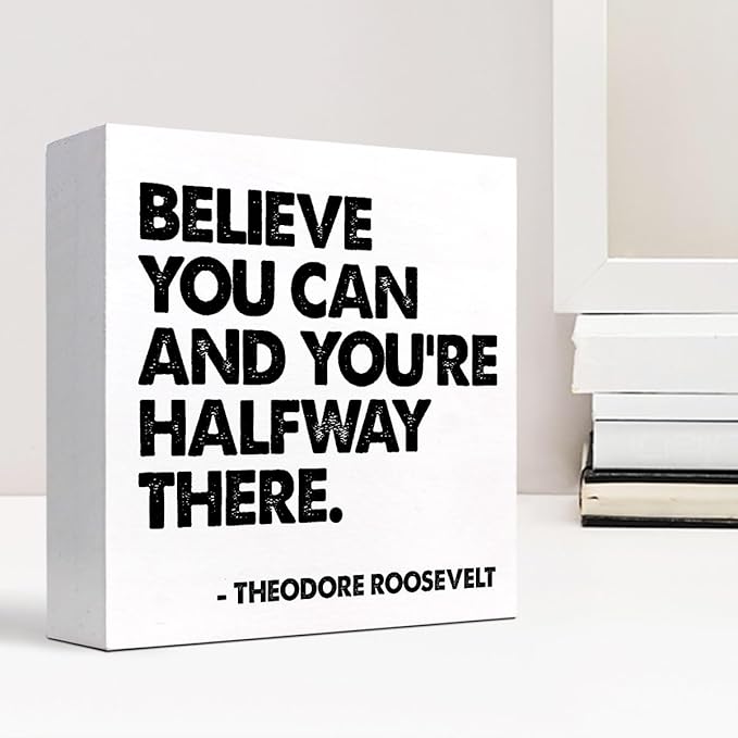 Believe You Can and You're Halfway There Wood Box Signs,Inspirational Wood Plaque Sign Desk Decor,Rustic Positive Wooden Block Sign Decor for Home Office Shelf Table Decoration C1073