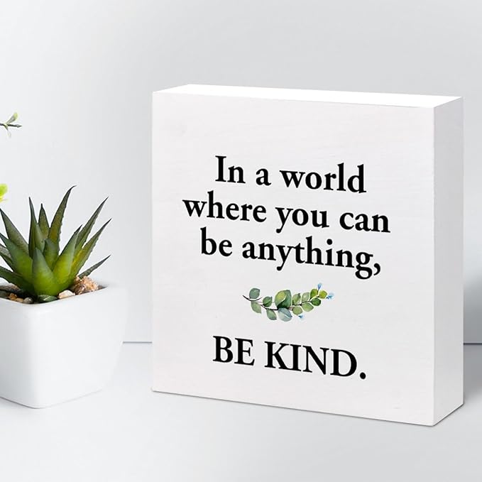 Inspirational Wood Box Sign Desk Decor,in a World Where You Can Be Anything Be Kind Wood Plaque Signs,Rustic Positive Wooden Block Sign Decor for Home Office Shelf Table Decoration C1075