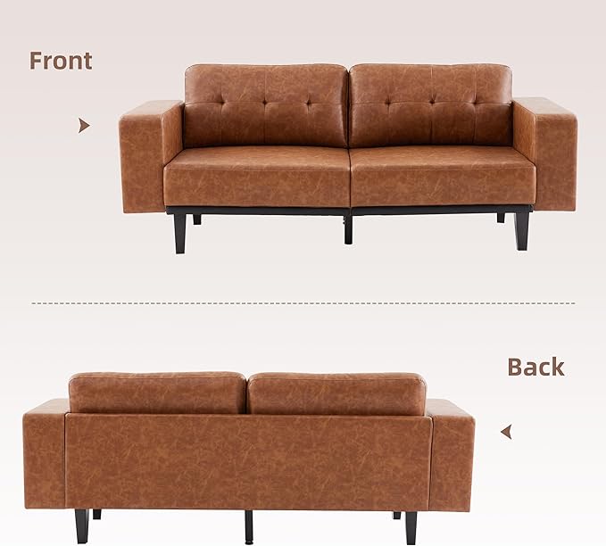 About This Leather 【MID CENTURY MODERN COUCH】 79'' faux leather couch with clean lines and smooth structure curve, anchor your...