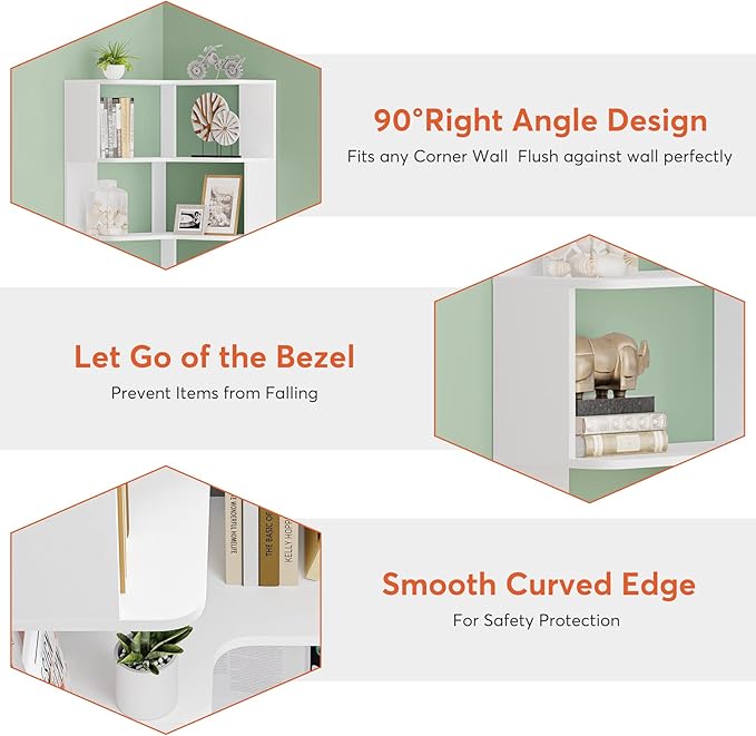 Corner Bookshelf, 64.9 Inch Tall Bookcase with Anti-Drop Panel, Modern Freestanding Corner Shelf Display Rack Storage Organizer for Home Office, Living Room, White