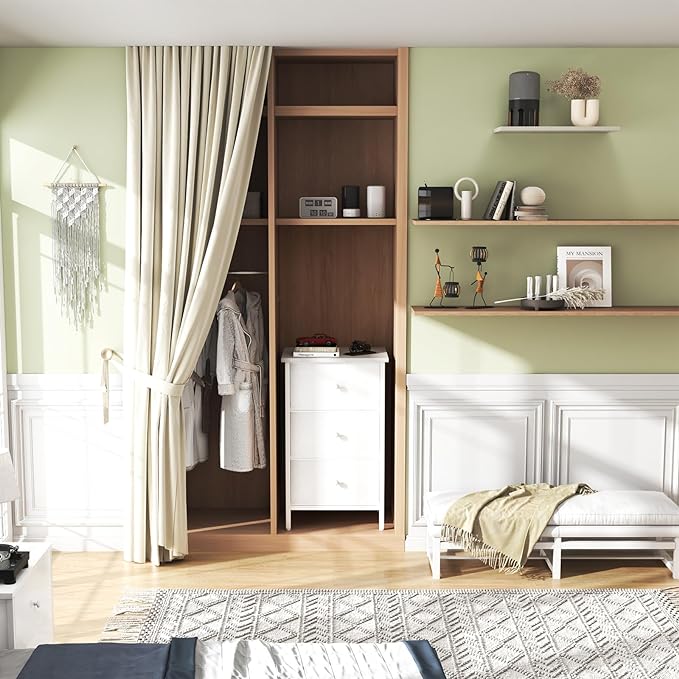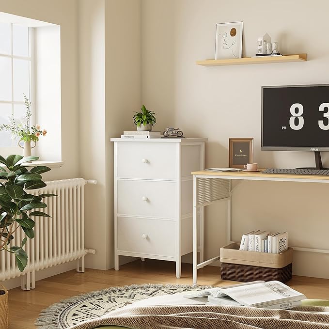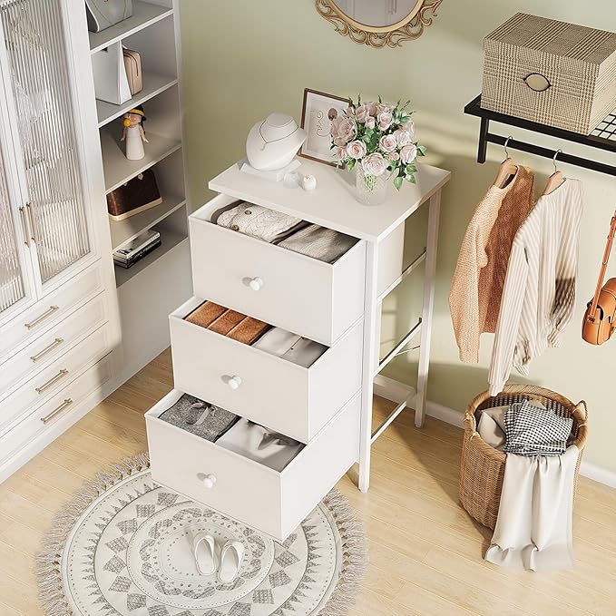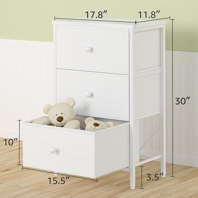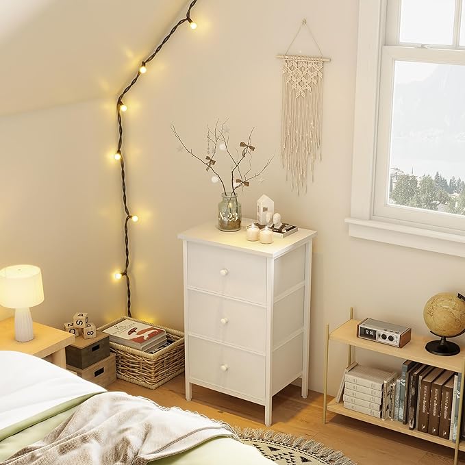 BOLUO White Night Stand with Drawers 3 Drawer Dresser for Bedroom, Tall Nightstand for Closet Dorm Modern Bedside Table