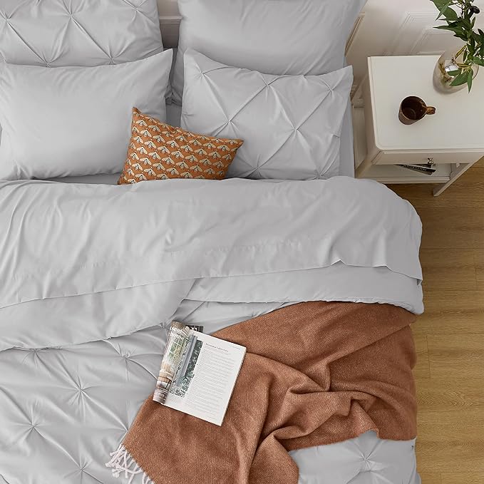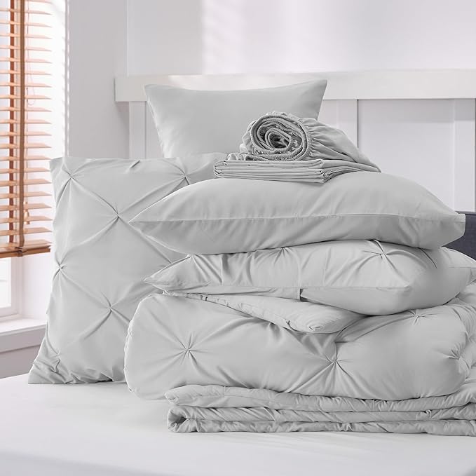 Bedsure California King Comforter Set Light Grey - Cal King Bed Set 7 Pieces, Pinch Pleat Cali King Bedding Set with Comforter, Sheets, Pillowcases & Shams