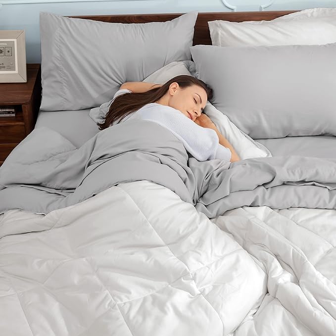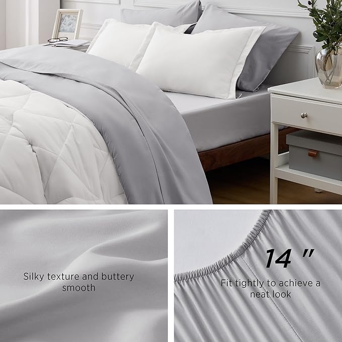 Bedsure Ivory Full Size Comforter Set - 7 Pieces Reversible Full Bed in a Bag, Full Bed Set Ivory and Grey with Comforters, Sheets, Pillowcases & Shams