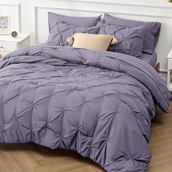 Bedsure Twin Comforter Set with Sheets - 5 Pieces Twin Bedding Sets, Pinch Pleat Grayish Purple Twin Bed in a Bag with Comforter, Sheets, Pillowcase & Sham