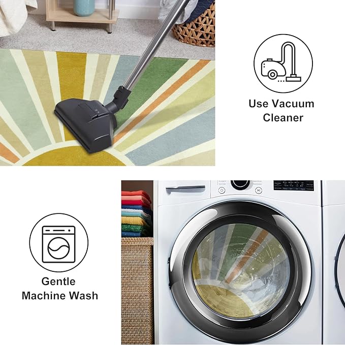 Boho Washable Rug 3'x5' Rug Kids Area Rug for Playroom, Colorful Kids Rug for Bedroom, Non-Slip Throw Sun Carpet Soft Small Sunshine Rug for Office Nursery Entryway Dorm
