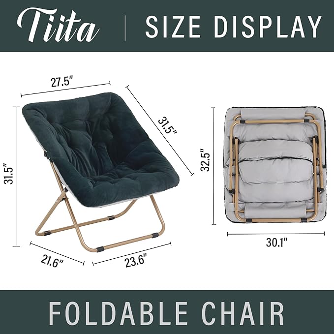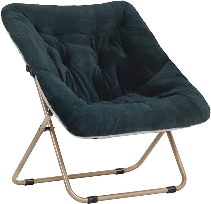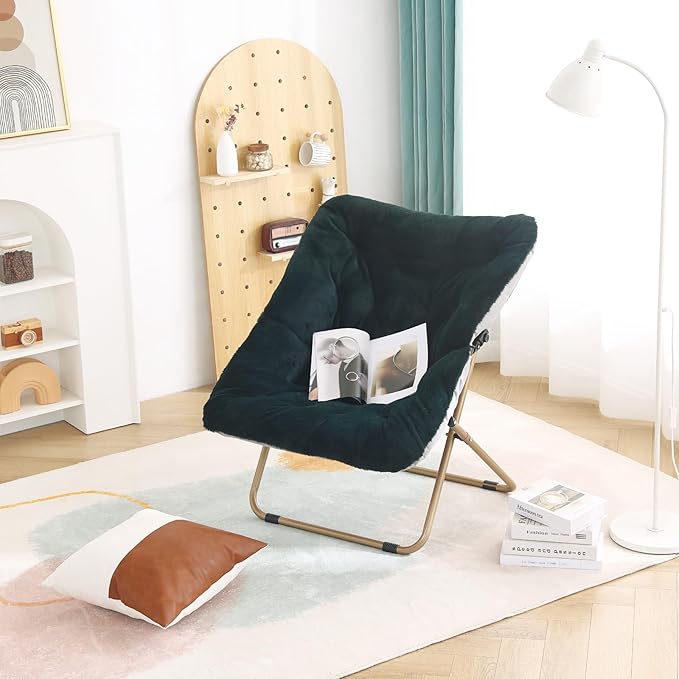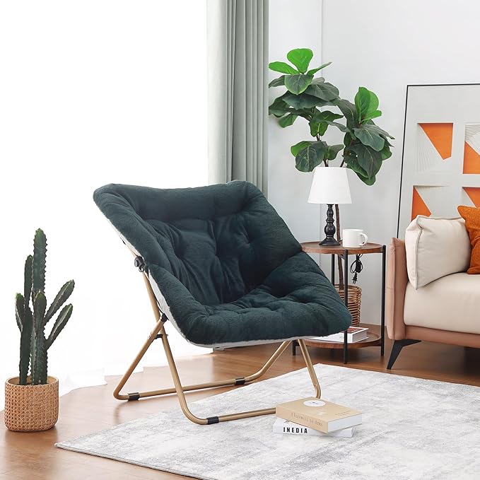 Tiita Comfy Saucer Chair, Soft Faux Fur Oversized Folding Accent Chair, Lounge Lazy Chair for Kids Teens Adults, Metal Frame Moon Chair for Bedroom, Living Room, Dorm Rooms
