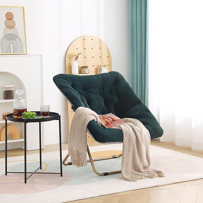 • Strong and High-quality Living Room Chairs: The moon saucer chair for bedroom is crafted with a strong steel frame and legs, it supports up to 250 lbs, safe sturdy and durable. The foot pads on the metal frame at the bottom of the chair not only prevent the lounge chair for bedroom from tilting and sliding, but also protect the floor from scratches.