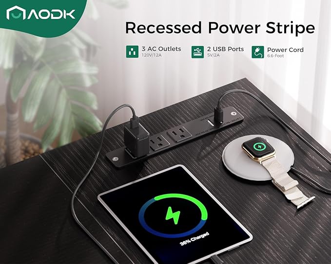 About This 【Power Outlets & Charging Ports】 AODK computer desk is equipped with 3 power outlets & 2 USB charging...