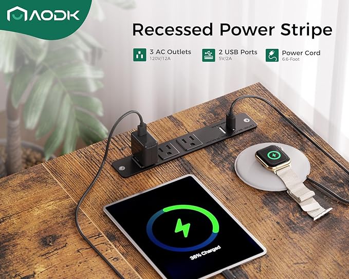 About This 【Power Outlets & Charging Ports】 AODK computer desk is equipped with 3 power outlets & 2 USB charging...