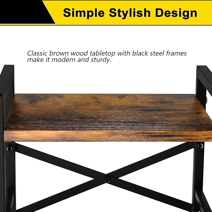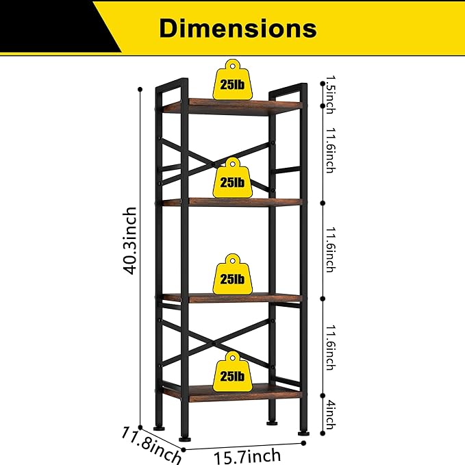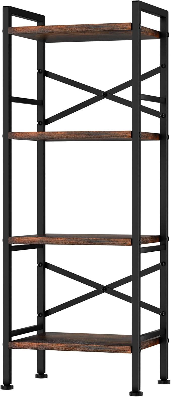 4 Tier Book Shelf, Small Bookshelf Storage Organizer, Tall Narrow Bookcase with Storage Shelves, Wooden Industrial Office Shelves for Bedroom, Living Room, Rustic Brown