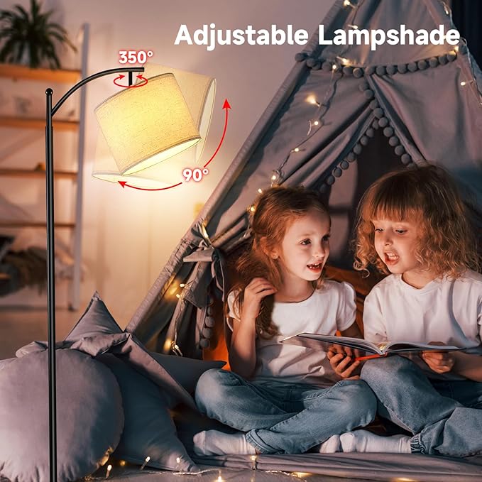 Floor Lamp for Living Room with 4 Color Temperatures, Standing Lamp with Adjustable Linen Shade, Remote Control and Stepless Dimmable tall lamp for Bedroom, Office,9W Bulb Included(Black)