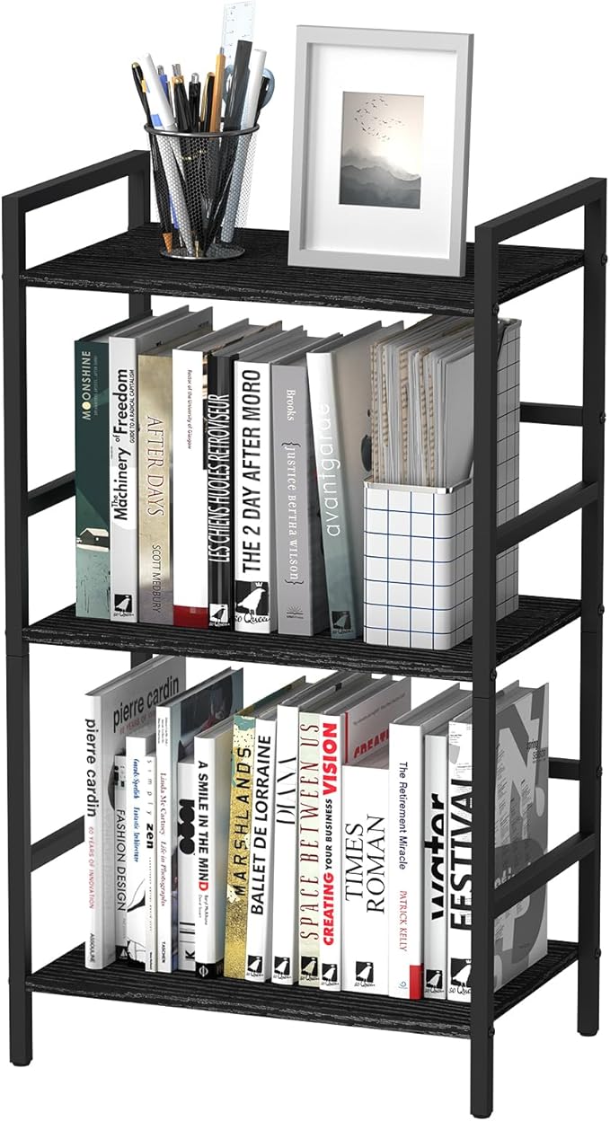 CADUKE Industrial Bookcase 3 Tier Book Shelf Organizer for Office Small Bookshelf with Storage for Bedroom Black Book Display Shelf Wood for Living Room Study Room