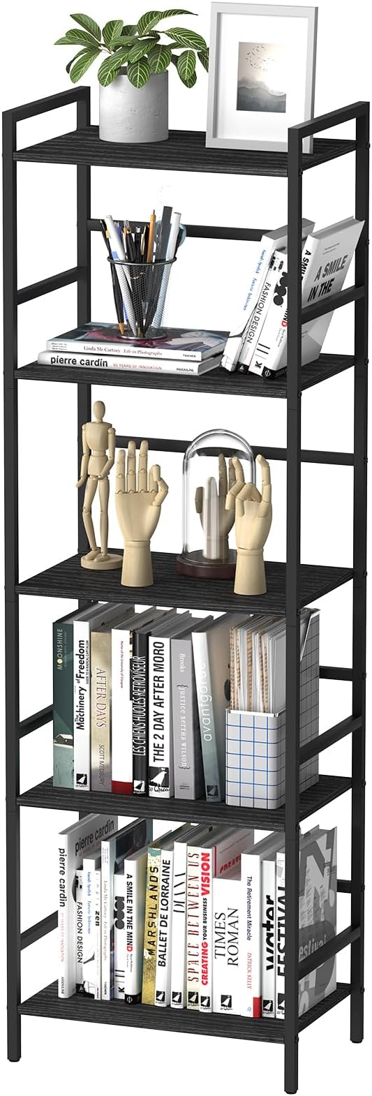CADUKE Black Tall Bookcase 5 Tier Book Shelf for Bedroom Industrial Bookshelf with Storage Book Shelves for Kids Room Standing Office Bookshelves and Bookcases for Bedroom Living Room