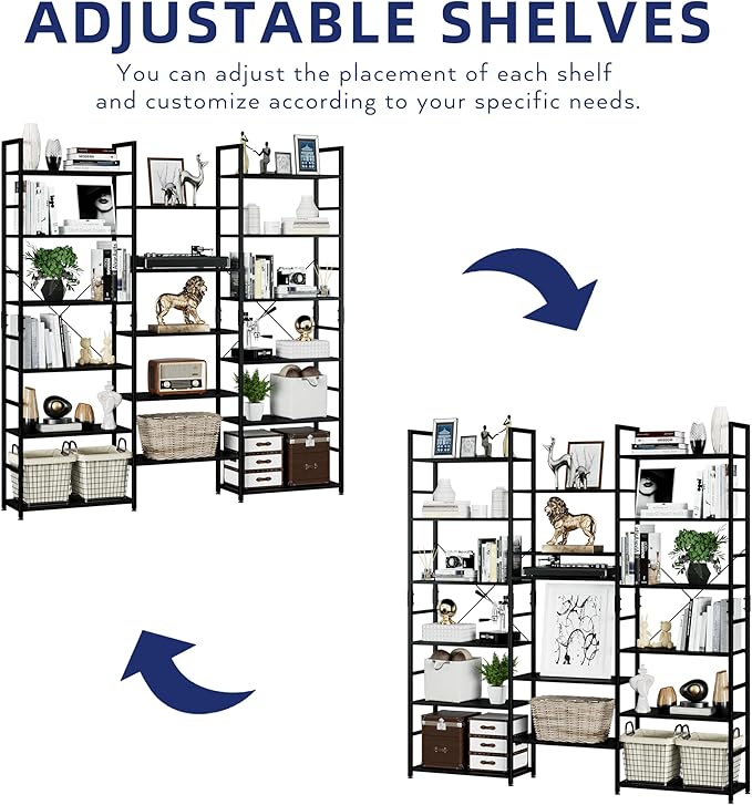 About This ✅【TRIPLE WIDE MULTIFUNCTIONAL BOOKSHELF】A wide bookshelf in style. It has 17 open shelves in total for a huge...