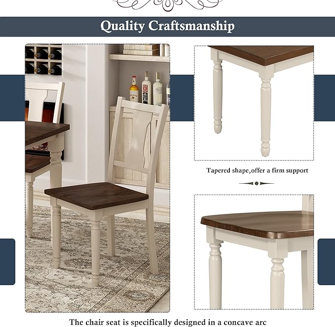 Room Piece Kitchen Dining Set for 6-Farmhouse Rustic Style Rectangular Wood Table, 4 Chairs, 1 Bench for Family, Onesize, Brown+Cottage White