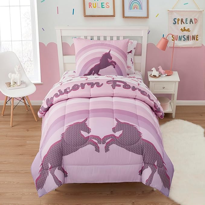 Kids Bedding Set Bed in a Bag for Boys and Girls Toddlers Printed Sheet Set and Comforter, Twin, Unicorn Forever