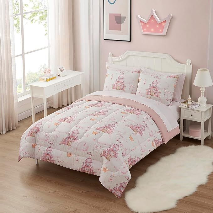 Kids Bedding Set Bed in a Bag for Boys and Girls Toddlers Printed Sheet Set and Comforter, Full, Fairytale Princess