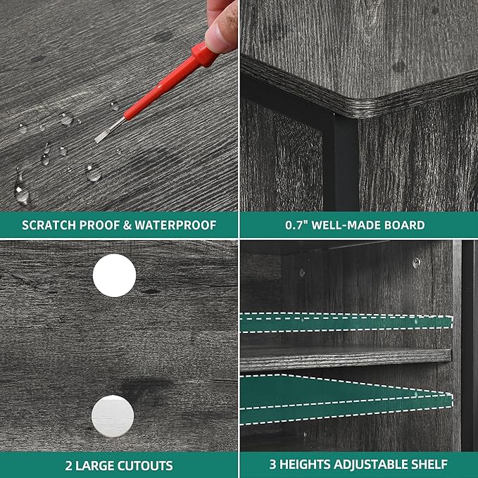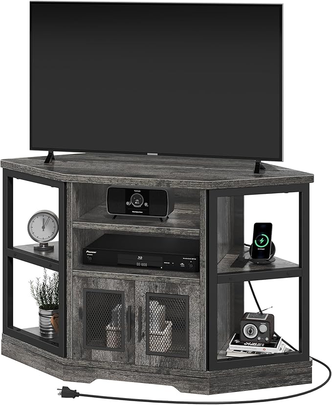 YITAHOME Corner TV Stand for TVs up to 55 Inch with Power Outlet, Modern Farmhouse Entertainment Center, Wood TV Media Console with Storage Cabinets Shelves for Living Room Bedroom, Gray Oak