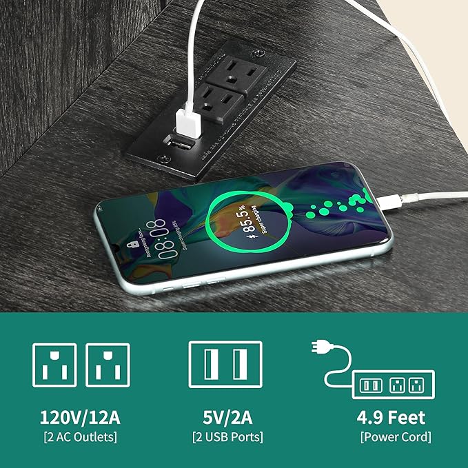About This Engineered Wood TV media console shelf with power outlet and USB ports: The entertainment center TV stand shelf...