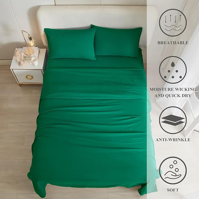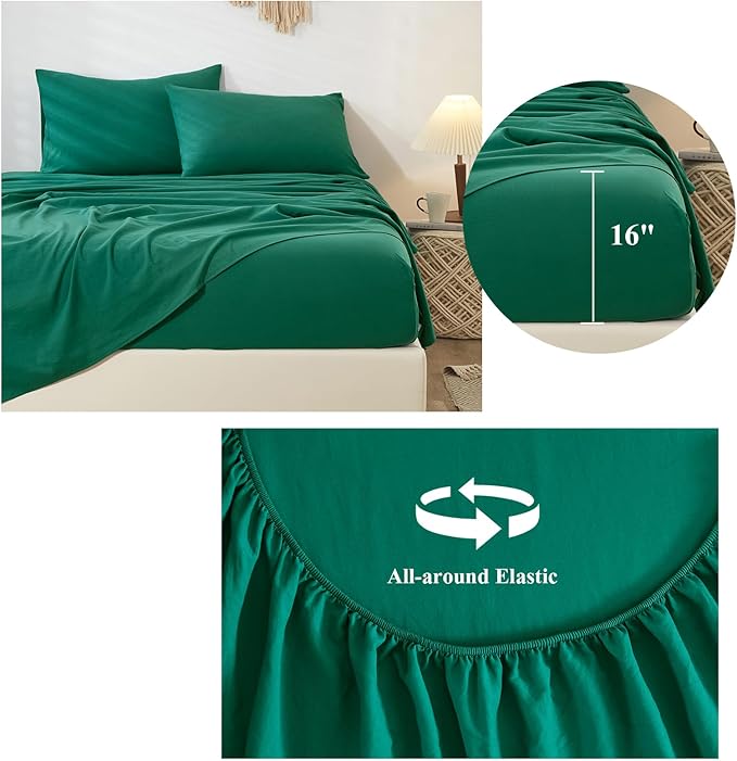 HighBuy Dark Green Full Size Sheet Set Extra Soft Deep Pocket Sheets Set,4 Piece Bed Sheets Set Fit 16 Mattress,Wrinkle,Fade,Stain Resistant Cooling Bed Sheets,Fitted Sheets,Pillowcases Set