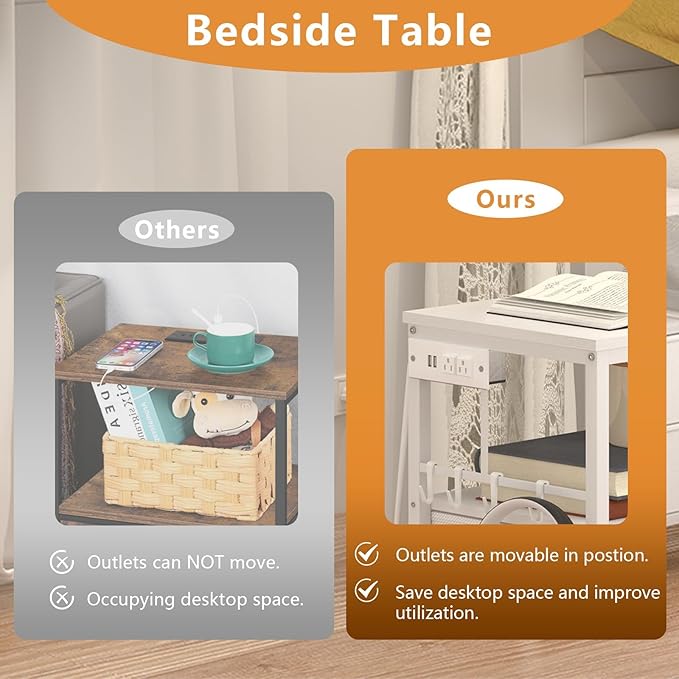 About This [Nightstand with Movable Outlets] Add 2 AC outlets and 2 USB ports, plug in your phones and turn...