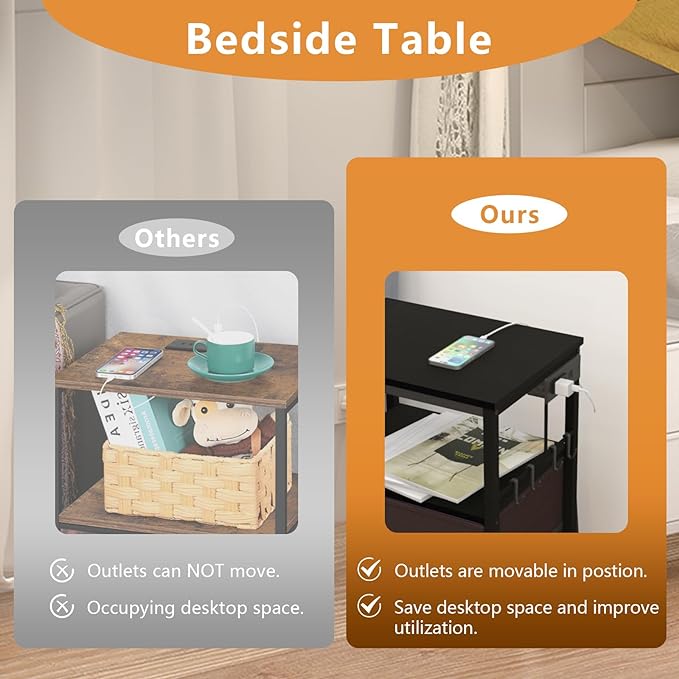 About This [Nightstand with Movable Outlets] Add 2 AC outlets and 2 USB ports, plug in your phones and turn...