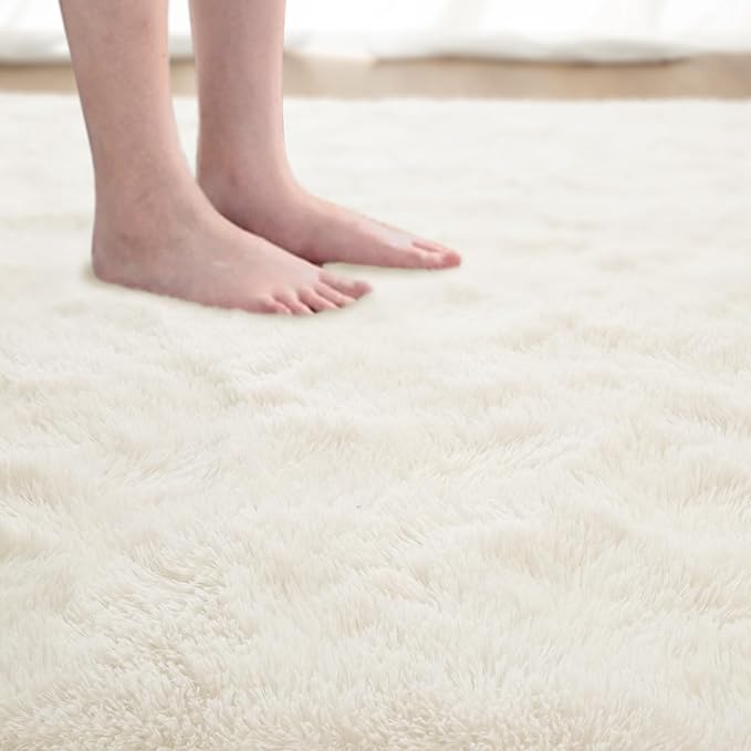 Softlife Rug for Bedroom 3x5 Feet Area Rug for Living Room Super Soft Shaggy Rugs for Kids Room Fluffy Fuzzy Carpets Long Plush Bedside Rug Nursery Christmas Home Decor for Boys Girls, Creamy White