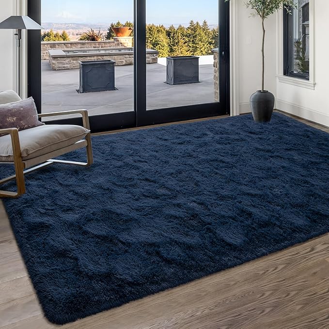 Softlife Rug for Bedroom 3x5 Feet Area Rug for Living Room Super Soft Shaggy Rugs for Kids Room Fluffy Fuzzy Carpets Long Plush Bedside Rug Nursery Christmas Home Decoration for Boys Girls, Navy Blue