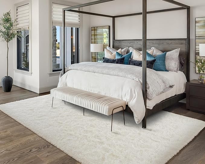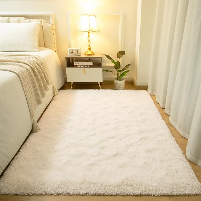Softlife Rug for Bedroom 5.3x7.6 Feet Area Rug for Living Room Soft Shaggy Rugs for Kids Room Fluffy Fuzzy Carpets Long Plush Bedside Rug Nursery Christmas Home Decor for Boys Girls, Creamy White