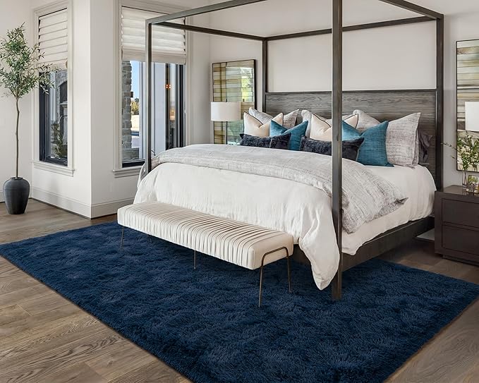 Softlife Rug for Bedroom 5.3x7.6 Feet Area Rug for Living Room Soft Shaggy Rugs for Kids Room Fluffy Fuzzy Carpets Long Plush Bedside Rug Nursery Christmas Home Decoration for Boys Girls, Navy Blue