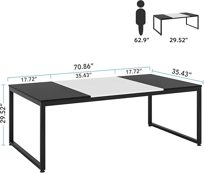 About This 【Spacious Tabletop】: This desk features a wide rectangular desktop measuring 70.86" in width and 35.43" in depth. It...