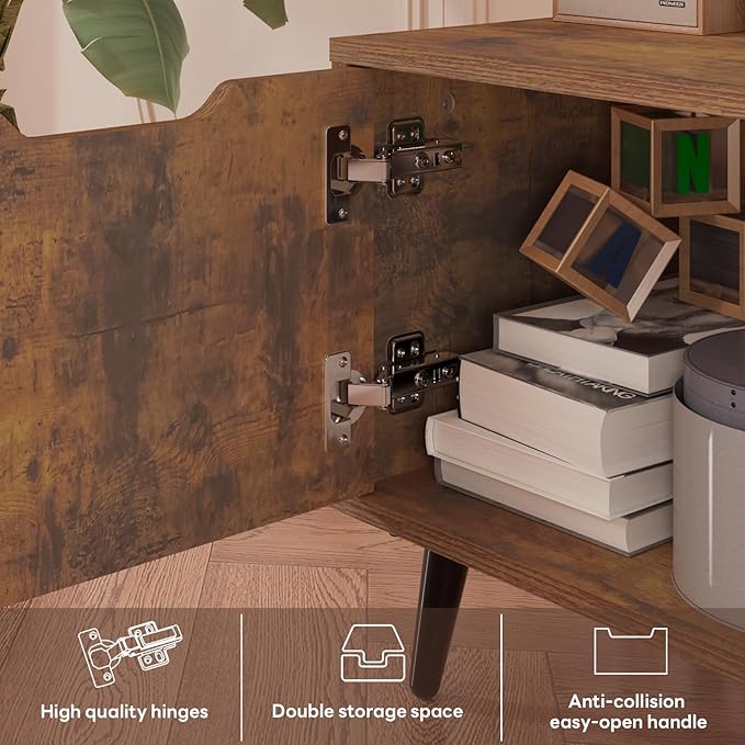 Maxtown TV Stands for Living Room, TV Console Table for 55 Inch TV, Entertainment Center with 1 Cabinet, 2 drawers, Media Console with Metal Feet for Bedroom, Living Room, Rustic Brown