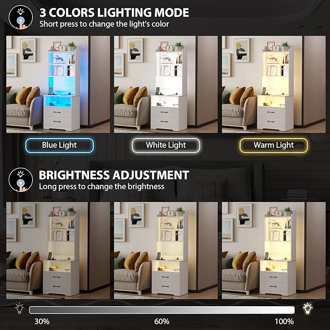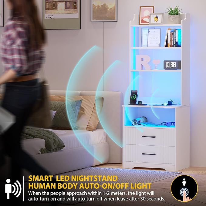 About This ⭐【SMART HUMAN NIGHTSTAND 】- Our tall nightstand comes with smart controls.You need to short touch to open PIR...