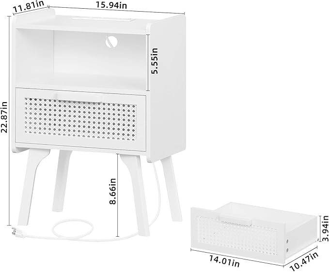 About This 【White Rattan Nightstand with Charging Station】The wood texture rattan night stand combines modern style and boho element. It...