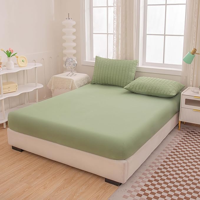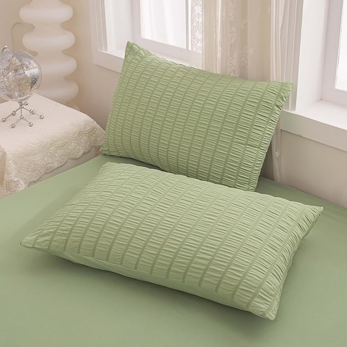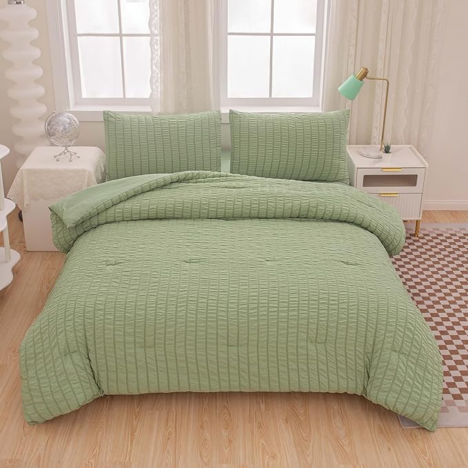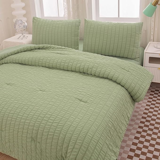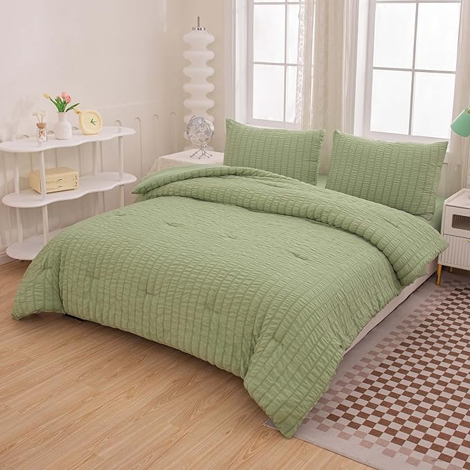 About This [Design]: Our seersucker sage green comforter set for girls has a dreamy and elegant design that will bring...