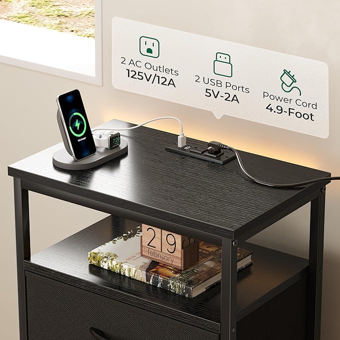 About This 【Nightstands with 2 Power Strips】Find more charging spots on the tabletop of the nightstands set of 2. 2...