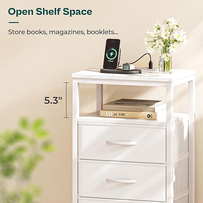 Nightstands Set of 2, 27.6 Inch End Tables with Charging Station, Side Tables with Drawers, PU Leather Finish, Bedside Tables with USB Port and Outlet, Night Stands for Bedroom, white