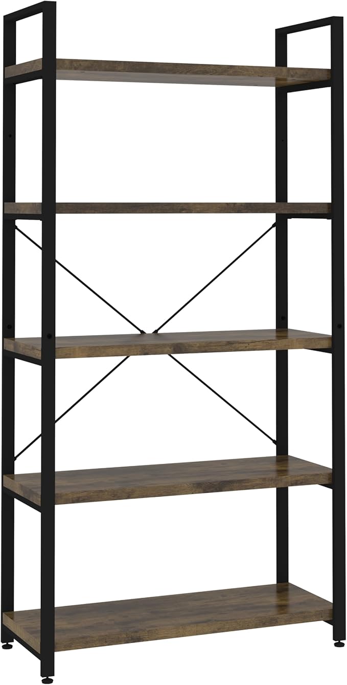 Panana 5 Tier Industrial Rustic Wooden Bookshelves, Vintage Open Wood and Metal Farmhouse Bookshelf Heavy Duty Storage Shelving Unit Rack (Brown)