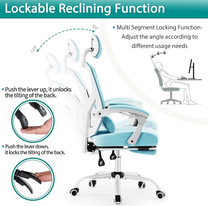 MCQ Office Computer Desk Chair, Gaming Chairs for Adults, High-Back Mesh Rolling Swivel Reclining Chairs with Wheels, Comfortable Lumbar Support, Comfy Arms for Home, Office, Gaming, Student, Blue