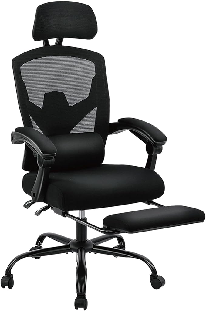MCQ Office Computer Desk Chair, Gaming Chairs for Adults, High-Back Mesh Rolling Swivel Reclining Chairs with Wheels, Comfortable Lumbar Support, Comfy Arms for Home, Office, Gaming, Student, Black