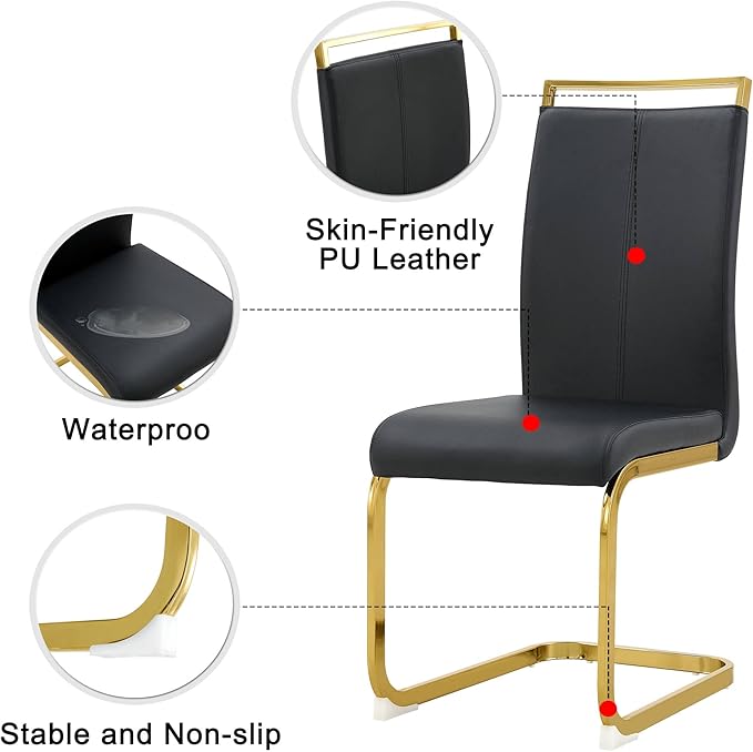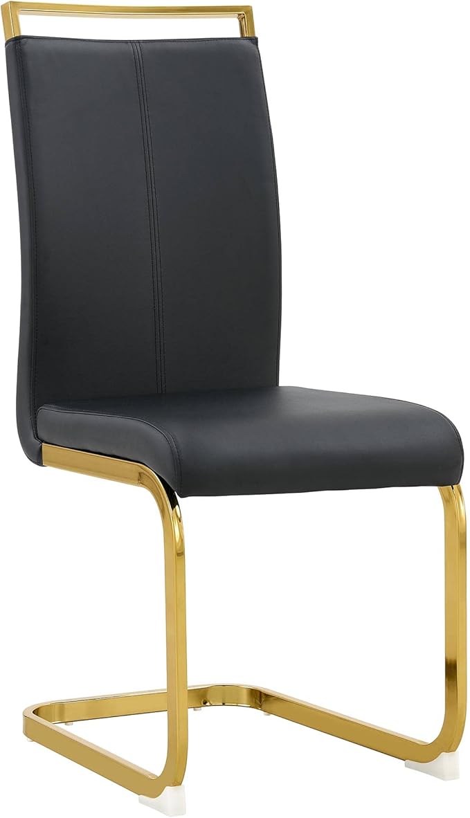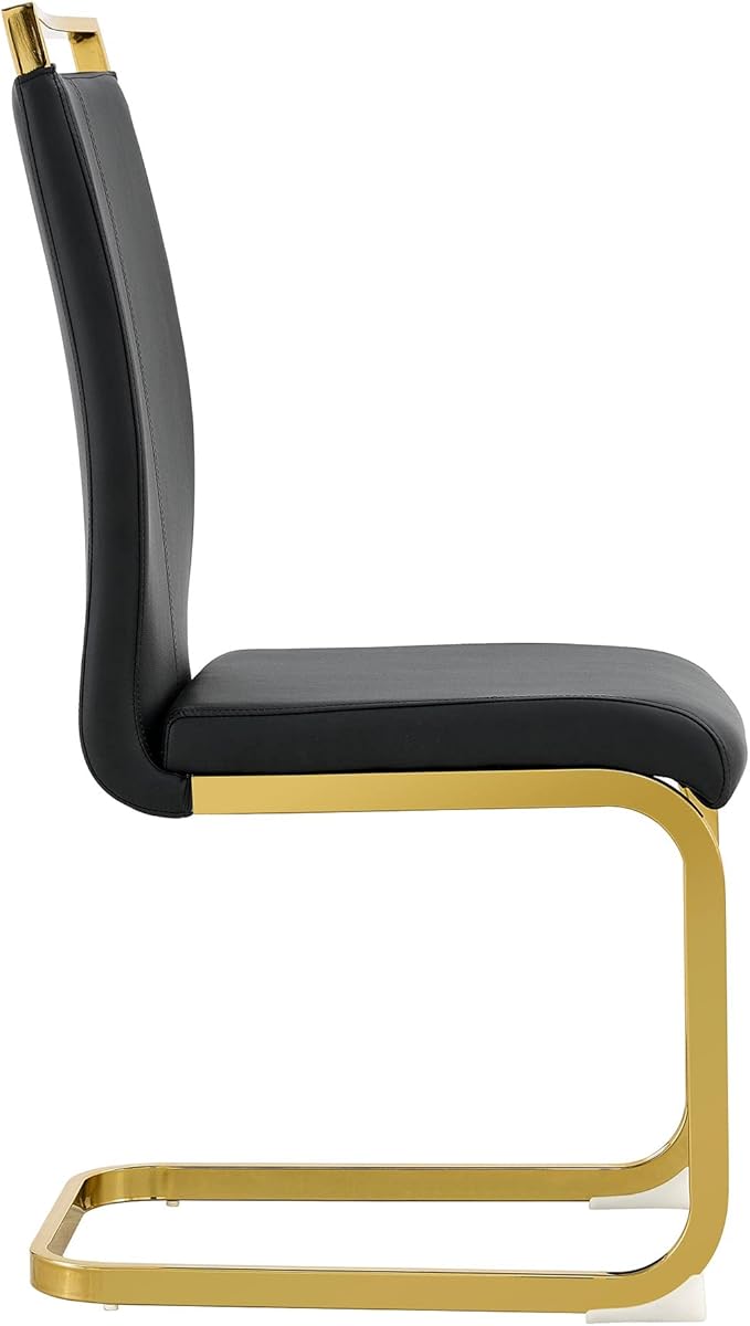 Modern Dining Chairs Set of 2, Side Dining Room Chairs with Golden Legs, Kitchen Chairs with Faux Leather Padded Seat High Back, Chairs for Dining Room,Kitchen, Living Room Black