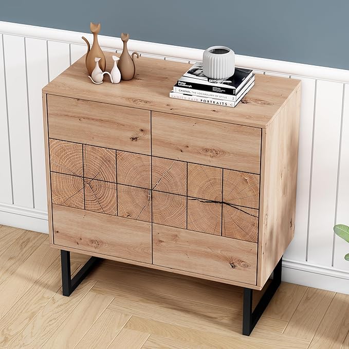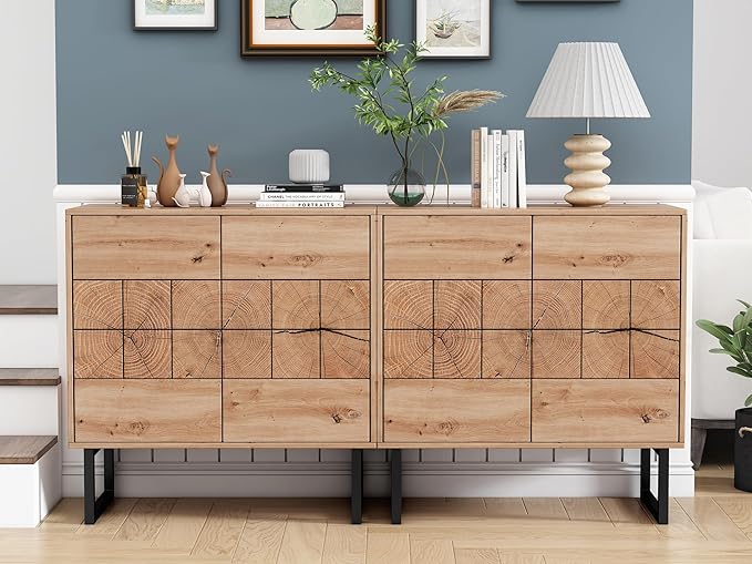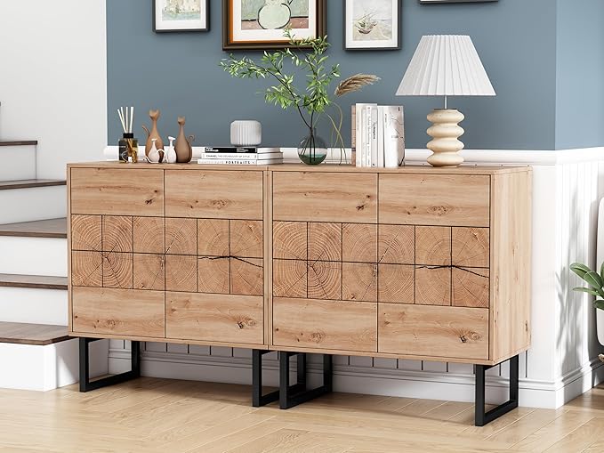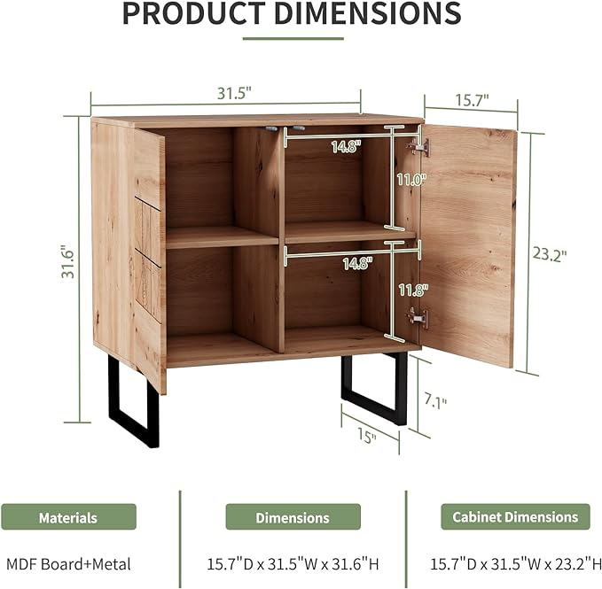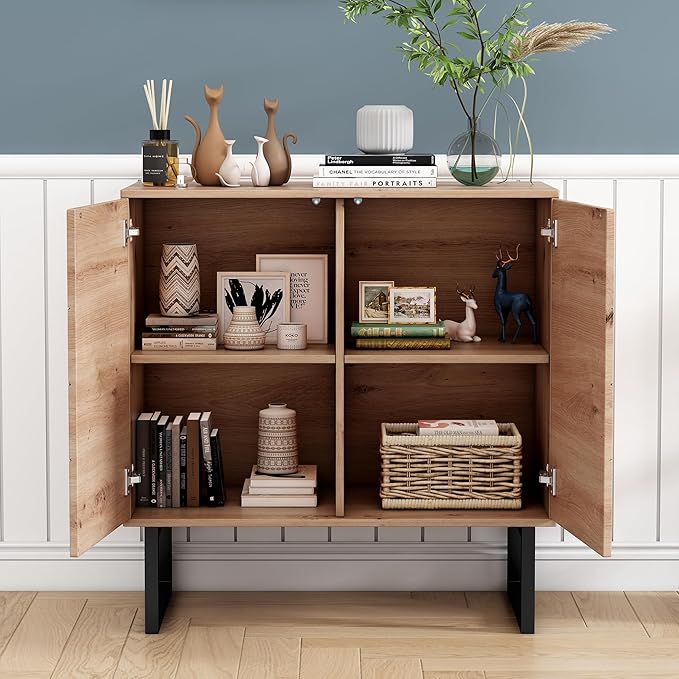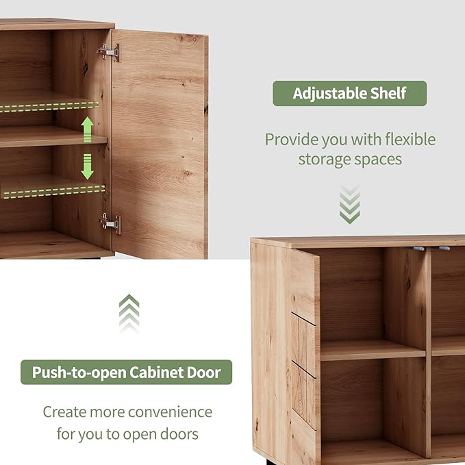 O&K FURNITURE Farmhouse Sideboard Cabinet, Storage Cabinet with Doors and Adjustable Shelves, Wood Buffet Cabinet with Storage for Kitchen, Living Room, Entryway, Brown