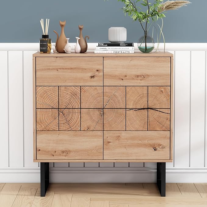 About This Unique Design: The wooden veneer of tree annual ring texture pasted on the surface of doors perfectly blends...